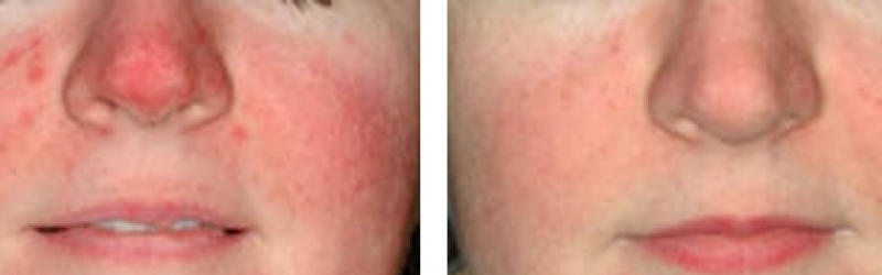 W leczeniu zmian naczyniowych przy użyciu IPL chromoforem docelowym jest oksyhemoglobina obecna w erytrocytach. Endogenne ciepło powoduje rozkład barwnika i uszczelnienie naczynia. Dodatkowo dzięki zwiększonej syntezie włókien kolagenowych i elastynowych poprawia się kondycja skóry. Staje się ona grubsze, bardziej zwarta, dzięki czemu naczynia krwionośne nie prześwitują, a rumień staje się mniej widoczny.